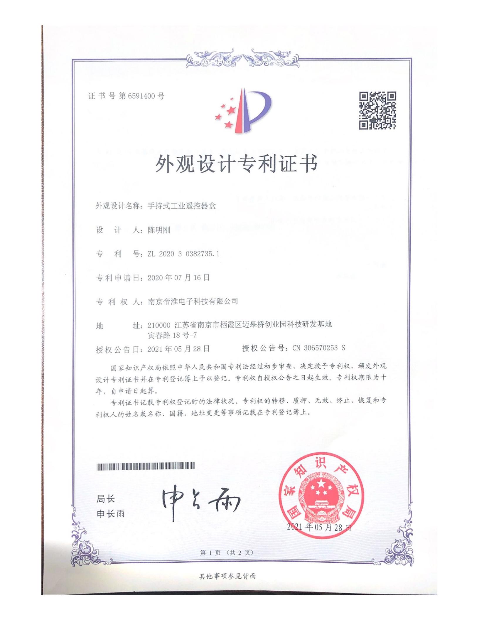 南京帝淮电子科技有限公司,国内工业??仄餍幸盗炀笠?,自主研发、定制、非标设计各类工业级无线??仄?、工业级有线控制器、智能化自主算法逻辑的本地控制器等系列产品。已经申请及正在申请的技术专利、外观专利有近三十项左右,并通过了CE欧盟认证、国家级试验检验报告、EMC电磁兼容认证等。