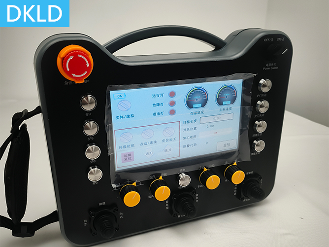 • 3个双轴摇杆+8个按键+1个两档旋转开关+1个5档旋转开关7寸触摸屏平板型工业无线??仄?/div>